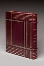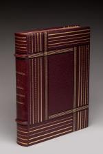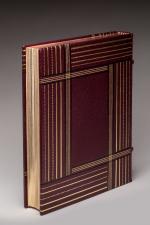 In-4°, plein maroquin rouge mosaïqué signé Gruel. Couvertures conservées. Décor géométrique sur les plats et le dos, se prolongeant sur les coupes et les contreplats, composé de filets droits, simples et gras, de filets au pointillé, simples et gras, et de bandes de maroquin noir. Gardes de moire. Tête dorée.