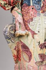 Costume de scène du Clown triste du cabaret Madame Arthur en tissu entièrement brodé de sequins à décor de poissons et coquillages dans les fonds marins. Le col et les poignets soulignés de dentelle et de galons de lurex doré. Fermeture éclair dans le dos et sur les manches.