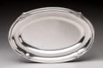 Plat ovale ceint de filets et décor feuillagé. Poinçon : Minerve - Orfèvre : Robert...
