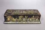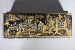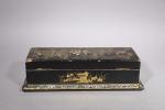 Boîte à gants en bois laqué noir à décor burgauté et doré dans le goût...