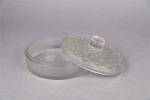 LALIQUE France. Bonbonnière de forme ronde en verre clair moulé-pressé. Signé sous la base. Haut. : 9 - Diam. : 18 cm