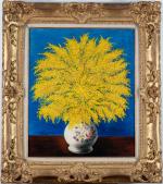 Moïse KISLING (1891-1953). Bouquet de mimosas. Huile sur toile. Signée...