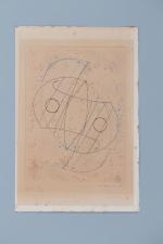Max ERNST (1891-1976). "Roger Caillois, Obliques".Eau-forte en couleurs. Montpellier, édition Fata Morgana. Signée en bas...
