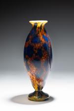 Vase en verre marmoréeen dans les tons jaunes,...