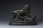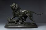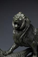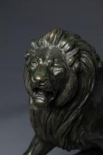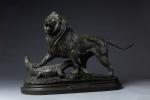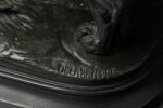Bronze à patine verte signé, portant sur la terrasse un cartouche titré et daté "Salon 1892".