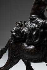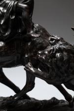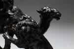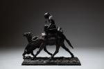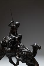 Vincenzo CINQUE (1852-1929). Chamelier oriental sur sa monture attaqué par un lion. Bronze à patine...