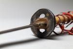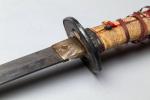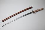 La monture : tsuka incomplète. Tsuba Shin no maru gata en fer noirci, fuchi en fer noirci.