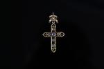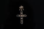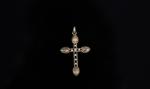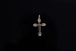 Croix ajoutée en or jaune 18k (750 millièmes) retenant sept diamants taillés en rose et...