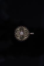 Pendentif circulaire en or jaune 18k (750 millièmes) à décor rayonnant filigranné centré d'un tréfle,...