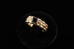 Bague bandeau en or jaune 18k (750 millièmes) à effet godronné centrée d'un saphir taille...