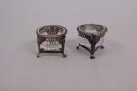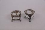 Paire de salerons en argent à décor de cariatides égyptiennes aillées reposant sur des pieds...