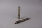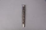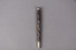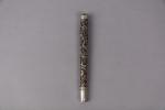 Etui à rouleau et manche d'ombrelle en argent estampé à décor de dragons parmis des...