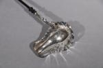 Cuiller à punch en argent à décor feuillagé, le manche en bois tourné noirci. Fin du XIXe siècle.