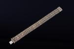 Bracelet en or jaune 18k (750 millièmes) à maille articulée soulignée de deux rangées de...