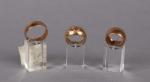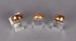 Ensemble de trois bagues en or rose 14k (585 millièmes), dont deux alliances unies, la...