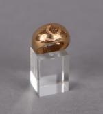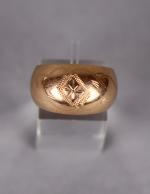 Ensemble de trois bagues en or rose 14k (585 millièmes), dont deux alliances unies, la troisième gravée à décor ciselé.
