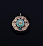 Pendentif en or jaune 18k (750 millièmes), à décor de dragons enserrant un disque bi...