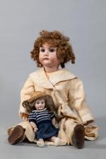 Poupée allemande avec tête en biscuit , bouche ouverte, marquée "GK 133/33", yeux dormeurs marron,...