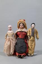 Une poupée du XIXème siècle, avec tête buste en biscuit, yeux peints,...