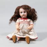 Poupée française avec tête en biscuit, bouche ouverte, marquée "1907", taille 6, yeux fixes bleus,...