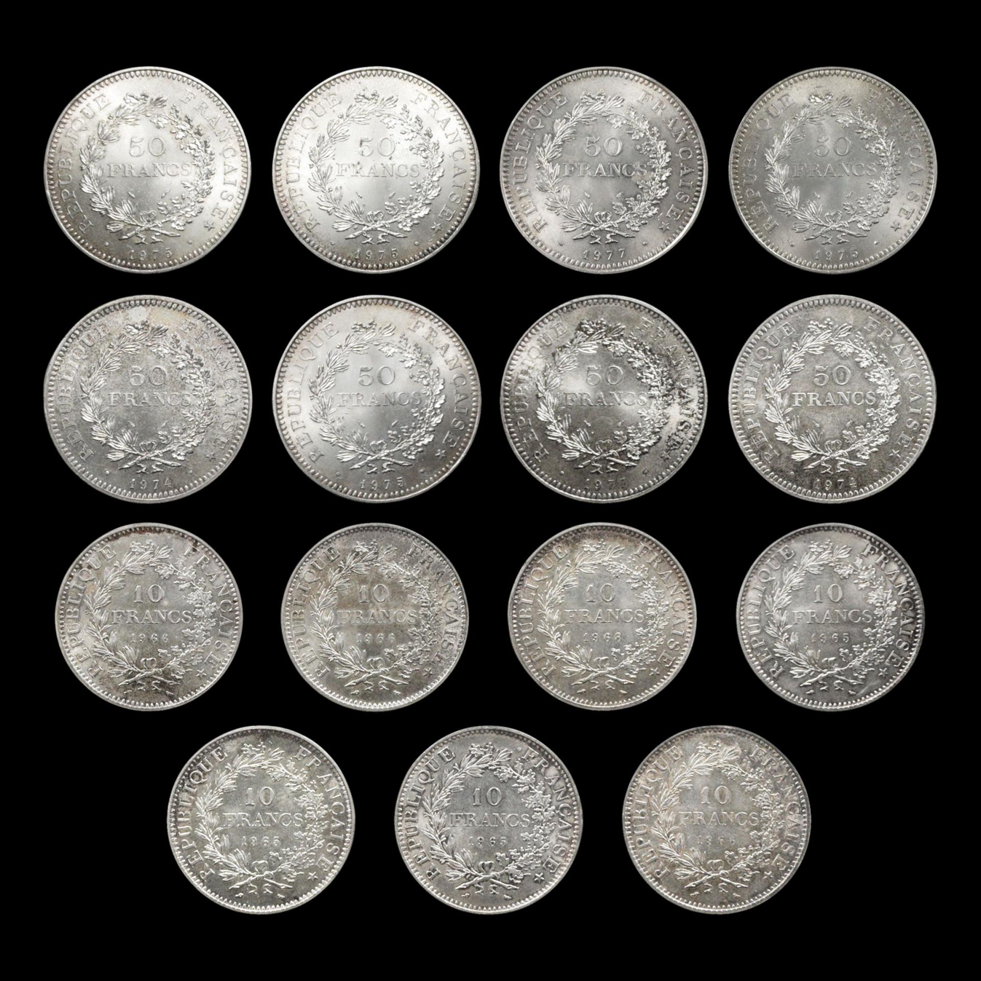 - 7 x 10 francs argent, Hercule, 1965, 1966 et 1968 ;