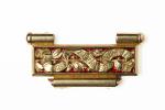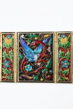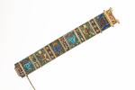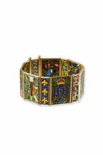 Fils d’Alexis Falize, il est comme lui spécialisé dans les techniques de l’émail directement héritées de l’art byzantin et médiéval que sont les émaux champlevés et cloisonnés. Il aura fallu au créateur des dizaines de cuisson au four pour obtenir la palette de couleurs vives et chatoyantes de ce bracelet, un véritable tour de force technique.