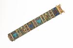 Lucien FALIZE (1839-1897) et Germain BAPST (1853-1921).Bracelet articulé réversible en or jaune émaillé polychrome à...