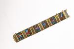 Bracelet articulé réversible en or jaune émaillé polychrome à douze maillons et un maillon additionnel amovible.
