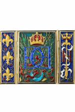 L’avers se compose de maillons sur fond de rinceaux végétaux portant le chiffre de Diane de Poitiers aux trois croissants entrelacés ; d’un trophée de carquois, arc et trompe de chasse ; du monogramme d’Henri II surmonté d’une couronne et sur un croissant de lune, l'un entouré de la devise "Sola Vivit in Illa". Chacun est rythmé de plaquettes sur fond bleu roi à décor d’un sceptre fleurdelisé centré d’un H et surmonté d’une couronne ; d’une flèche centrée d’un croissant de lune ou bien de trois fleurs de lys.