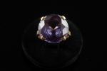 Bague en or jaune 18k (750 millièmes) retenant une importante Alexandrite de synthèse ronde facettée.