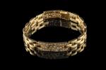 Bracelet en or jaune 18k (750 millièmes) modèle "Tyrana" à maille panthère rythmée de deux éléments pavés de diamants brillantés. Signé et numéroté.
