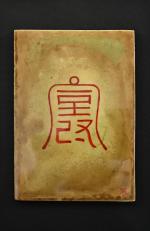 - Deux plaques de laque dessinées par Chou Ling, prévues pour servir de protection au livre. Elles sont bien complètes de leurs rubans de soie verte.