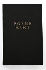 Coffret de l'éditeur couvert de soie noire (360 X 255 mm) portant au dos, poussé à l'or, "Poème sur soie". Ce coffret renferme :