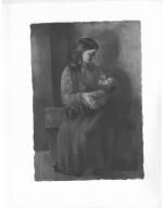 En arrière-plan, une jeune femme assise, foulard noué autour du cou, est vêtue, suivant les coutumes d’habillement tziganes, d’une jupe longue et ample qui dissimule son corps. Volontairement effacée, elle tient en majesté une fillette, parfaitement apprêtée et parée, vêtue d’un costume traditionnel d’origine hongroise qu’elle a modifié à son goût.