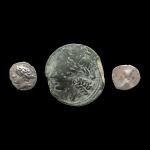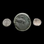 Monnaies gauloises, lot de 3 pièces de Marseille : obole MA, bronze au taureau, obole des Salyens