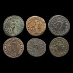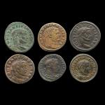 Monnaies romaines, Empire, lot de 6 follis : Constance Ier, Maximien, Galère, Constantin Ier