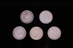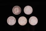 FRANCE. 5 x 5 francs argent dont Hercule, 1848, 1874, 1876, et Louis-Philippe Ier, 1845. Poids : 123,9 g