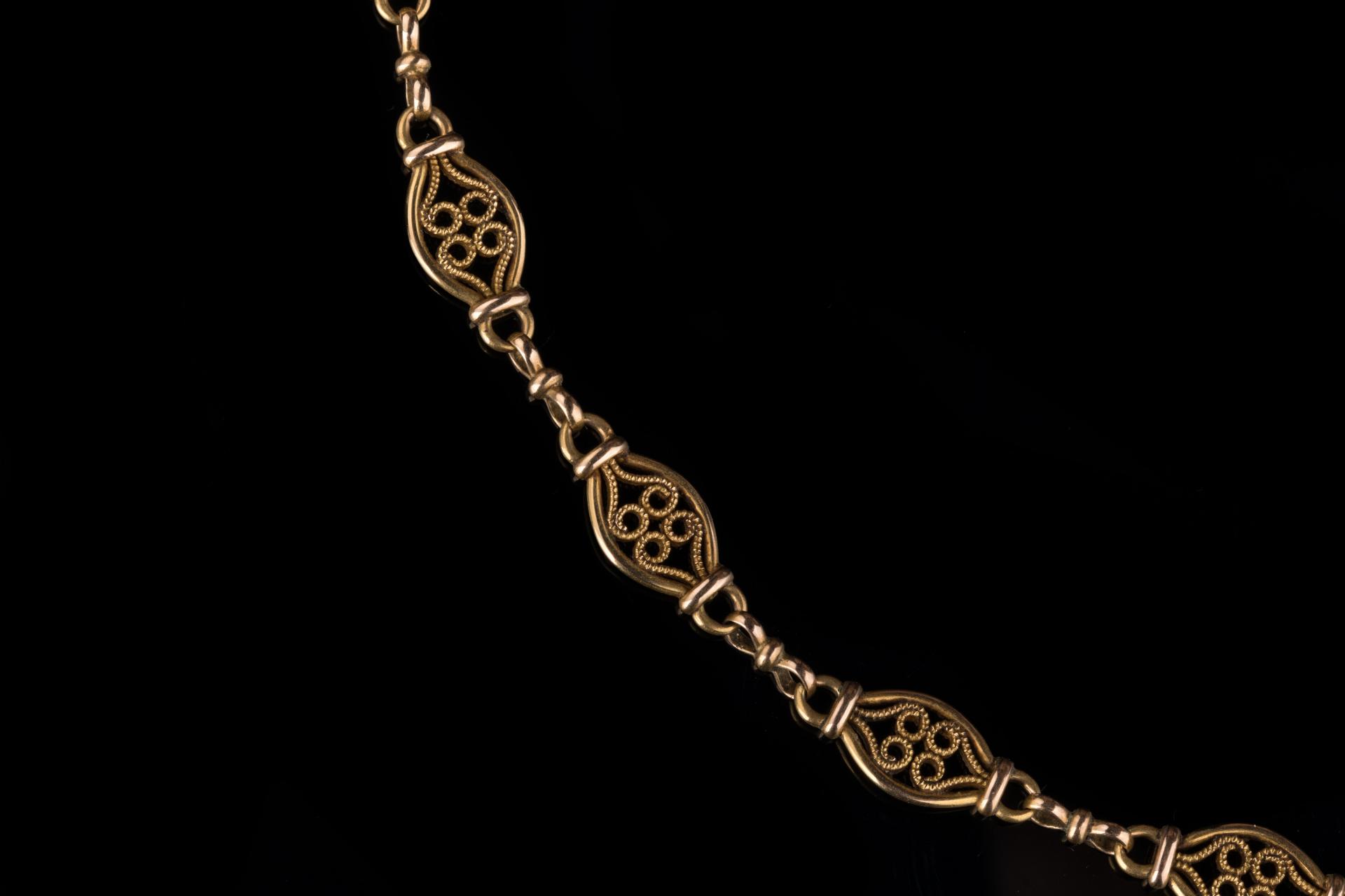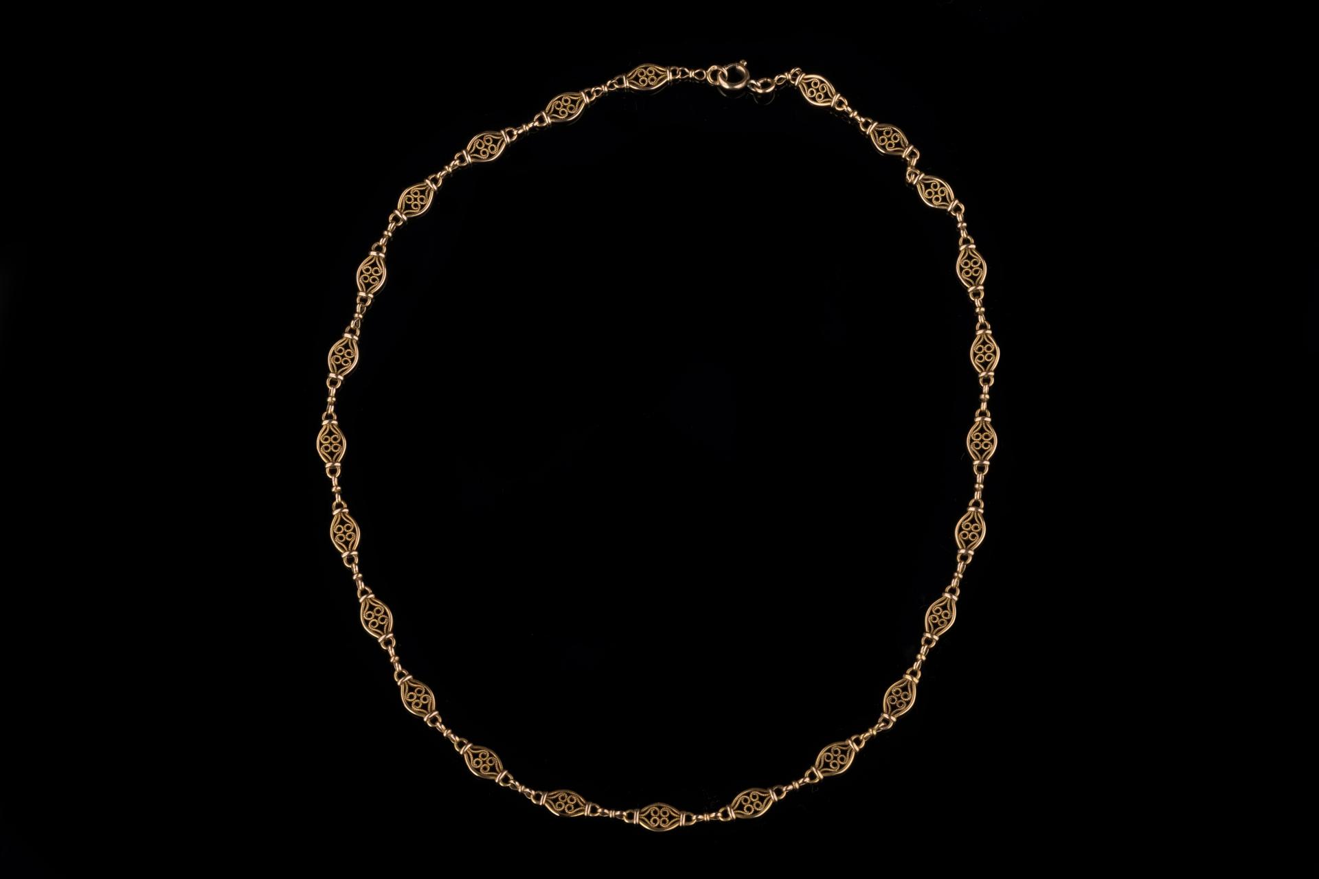 Chaîne ras de cou en or jaune 18k (750 millièmes) à maillons navette filigranés.
