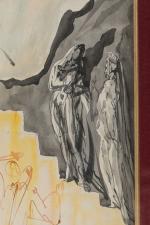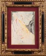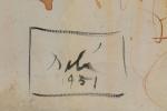 Gouache, aquarelle, plume et encre sépia sur papier, signée et datée à l'encre ou aquarelle noire en bas au centre dans un cartouche "Dalí / 1951".