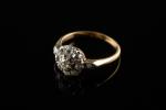 Bague marguerite en or jaune et gris 18k (750 millièmes) griffée d'un diamant central de taille ancienne d'environ 0,2 ct dans un entourage de huit diamants taillés en rose.