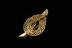 Broche de corsage résillée en or jaune 18k (750 millièmes) en forme de feuille.
