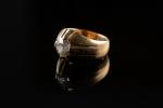 Bague en or jaune 18k (750 millièmes), le centre orné d'un diamant rond de taille...