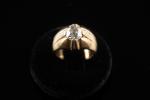 Bague en or jaune 18k (750 millièmes), le centre orné d'un diamant rond de taille ancienne.